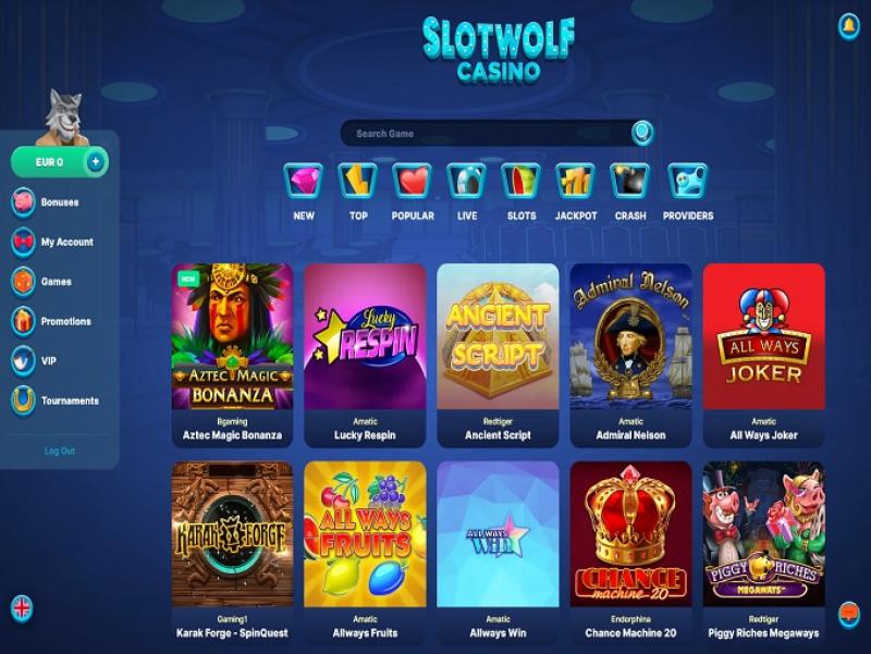 يقدم كازينو SlotWolf تشكيلة رائعة من ألعاب القمار، حيث تضم مكتبة الكازينو أكثر من 1500 لعبة. يضم الكازينو ألعابًا من شركات مثل Microgaming وYggdrasil Gaming وQuickspin وNetEnt وغيرها. تتوفر الألعاب على أجهزة الكمبيوتر والهواتف المحمولة، كما ستجد جوائز كبرى تصاعدية، مع عشرات الألعاب التي تقدم جوائز كبيرة.