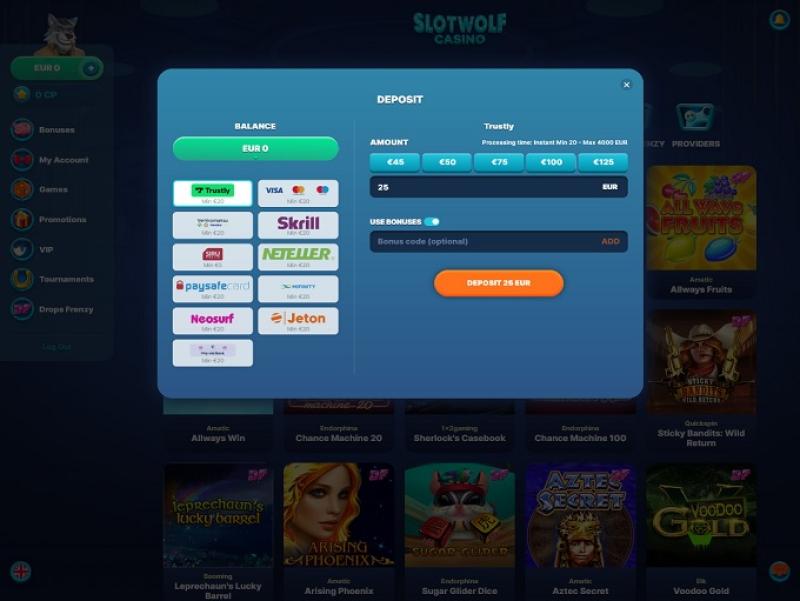 خيارات الخدمات المصرفية في SlotWolf Casino