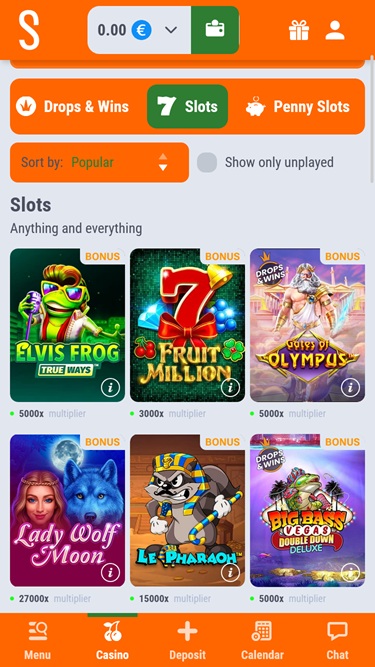 كما تتوقع، ستجد هنا آلافًا من ألعاب السلوتس الفريدة التي تتيح لك ربح أموال حقيقية. يمكن لعشاق هذا النوع من الألعاب الاستمتاع بمجموعة ضخمة من السلوتس ذات الآليات والميزات المتقدمة ، بدءًا من ألعاب Megaways ذات الروابط والجوائز الكبرى والدفعات العنقودية، وصولًا إلى الألعاب الكلاسيكية القديمة وأحدث الإصدارات.