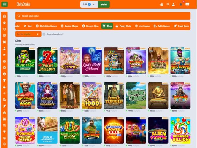 يُعدّ موقع SlotyStake كازينوًا مثاليًا على الإنترنت لعشاق ألعاب السلوتس التي تُتيح اللعب بأموال حقيقية، وقد أثبت ذلك من خلال توفير عدد هائل من هذه الألعاب، ما يعني أن حتى أصحاب الأذواق والتفضيلات الأكثر تحديدًا لن يجدوا صعوبة في العثور على ما يبحثون عنه بالضبط. جرّب اللعب!