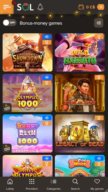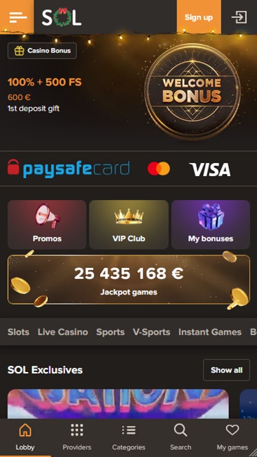 إن تسجيل الحساب في Sol هو إجراء بسيط للغاية يسمح للاعبين بالدخول إلى ردهة الكازينو على الفور تقريبًا.