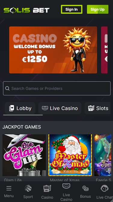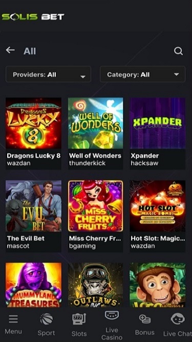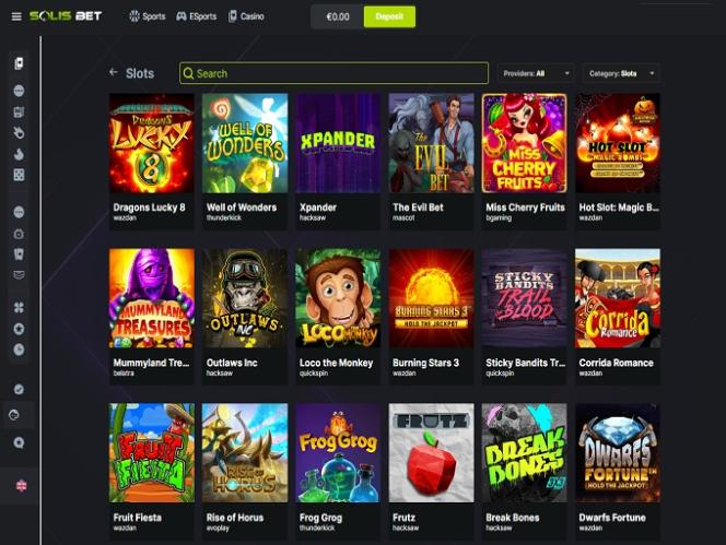 يستضيف Solis Bet ألعابًا ذات تصنيفات عالية ويقدم تجربة لعب ممتازة لجميع أنواع اللاعبين.