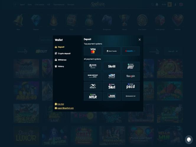 للإيداع والسحب، يتيح فريق كازينو سبيلوين للاعبين استخدام مجموعة متنوعة من طرق الدفع التقليدية والحديثة. يمكنهم استخدام العديد من المحافظ الإلكترونية وخيارات البطاقات، مثل فيزا ، وماستركارد ، والتحويل البنكي ، ونتلر ، وسكريل ، وباي سيف كارد ، وجيتون ، بالإضافة إلى خيارات العملات المشفرة مثل كاردانو ، وبيتكوين ، ودوجكوين ، وبولكادوت ، وإيثريوم ، ولايتكوين، وسولانا، وترون، وتيثر، وريبل ، و USD Coin .