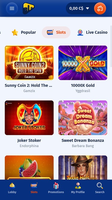 علاوة على ذلك، يتميز الموقع بألوانه الزاهية، ويبعث على البهجة والسرور، وهو ما نعشقه. أما بالنسبة للتصفح، فستتمكن من التنقل عبر المنصة بسلاسة، فكل شيء واضح وموجز ، تمامًا كما نفضله. نعلم أنه قد يكون من الصعب أحيانًا حتى بدء اللعب في بعض الكازينوهات المربكة، ولكن هذا ليس هو الحال هنا بالتأكيد.
