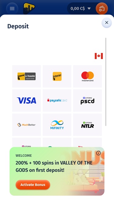 فيما يتعلق بخيارات الدفع المتاحة للاعبين لسحب وإيداع الأموال، فقد فوجئنا بتنوع الخيارات المتاحة. أولًا، سيسعد من يفضلون الكازينوهات التي تقبل العملات المشفرة بمعرفة سهولة القيام بذلك. إلى جانب العملات المشفرة، هناك العديد من الطرق الأخرى الشهيرة مثل فيزا، وماستركارد، ونتلر، وسكريل، ونيوسورف ، وترستلي، وغيرها.