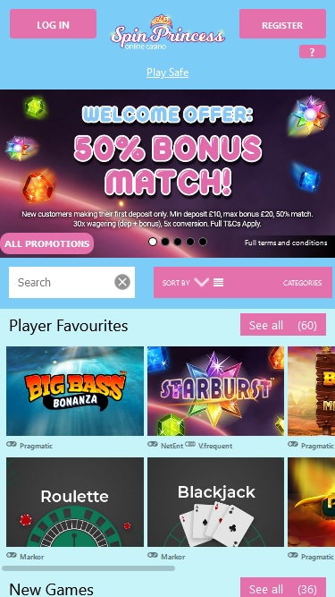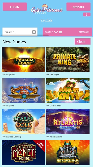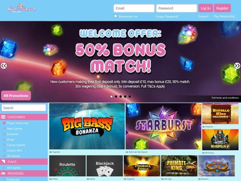 يتم تشغيل Spin Princess Casino بواسطة Microgaming, Net Entertainment, Big Time Gaming, ELK Studios, EYECON, lightningboxgames, Yggdrasil, Realistic Games, Pragmatic Play, Red Tiger Gaming, IGT, Skillzzgaming, Golden Rock Studios, SpinPlay Games, Games Global, Blueprint Gaming, Merkur Gaming, Nektan, NextGen, NYX Interactive, Inspired Gaming, SG Interactive, Scientific Games, Iron Dog Studio, Foxium, Just For The Win, Rocksalt Interactive, 4ThePlayer, Gamevy, Crazy Tooth Studio and ReelFeel Gaming ، والذي يقدم ألعابه من خلال منصة تعتمد على الويب، كما يحتوي الكازينو أيضًا على موقع جوال يسمح باللعب على الهواتف الذكية والأجهزة اللوحية.