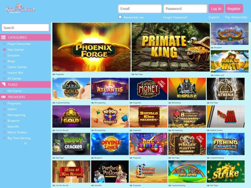 يتوفر عدد قليل من الفتحات للعب في كازينو Spin Princess، حيث يقدم الكازينو مجموعة مختارة من فتحات الفيديو التي تم تطويرها بواسطة Nektan وNextGen Gaming.