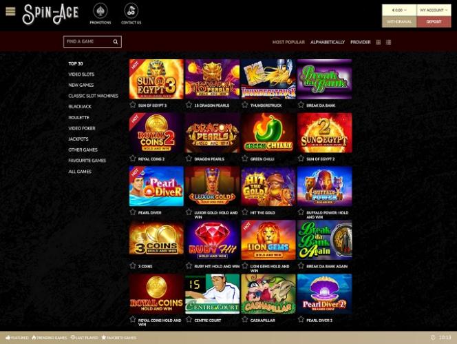 يحتوي كازينو Spin-Ace على مجموعة رائعة من عناوين ماكينات القمار من موفري البرامج مثل Playson وRelax Gaming وBig Time Gaming وغيرهم لأولئك الذين يتطلعون إلى قضاء معظم وقتهم في لعب بعض ماكينات القمار المذهلة ذات الذراع الواحدة.
