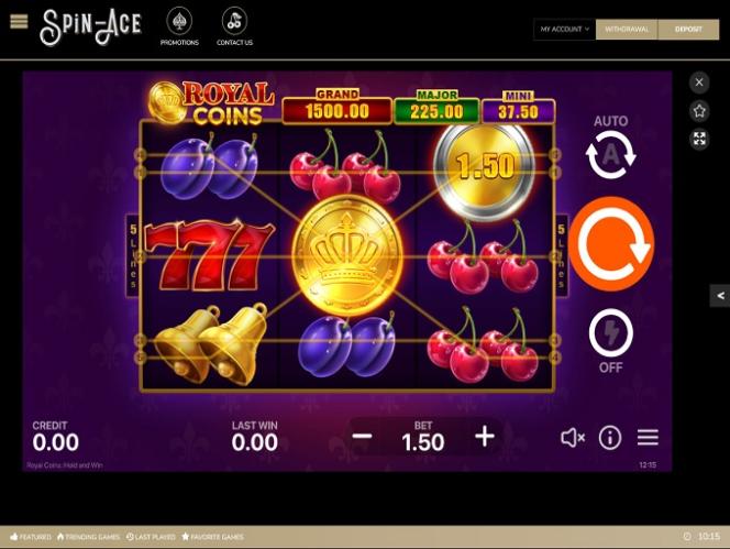 - لا توجد رسوم إيداع أو سحب للاعبين في كازينو Spin-Ace