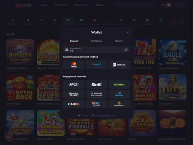 خيارات الخدمات المصرفية في SpinEmpire Casino
