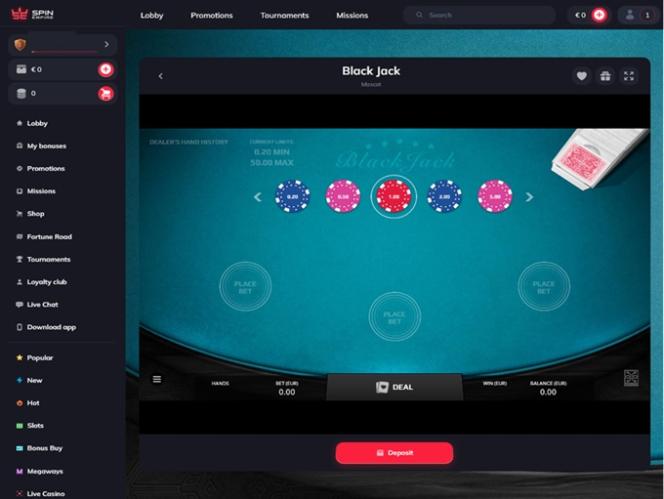 SpinEmpire Casino Blackjack (Platipus Gaming)يوسع