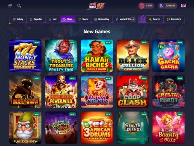 تكمن جاذبية كازينو سبينلاندر الرئيسية في كتالوجه الضخم من ألعاب الكازينو، لذا إذا كنت من محبي استكشاف وتجربة آلاف الألعاب المختلفة، فستقضي وقتًا ممتعًا هنا. ستجد هنا ألعاب ماكينات القمار الإلكترونية، والموزعين المباشرين ، وألعاب كراش، وألعاب الطاولة، والرياضات الافتراضية، وستوفر لك آلاف الساعات من الترفيه.
