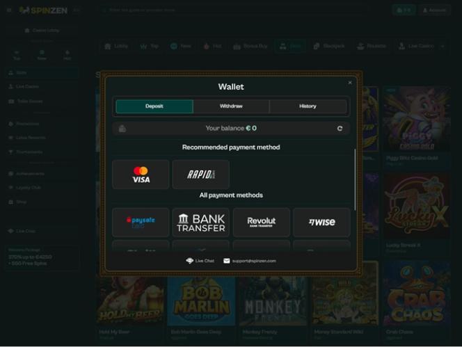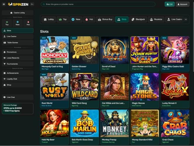 فريق كازينو سبينزن لا يمزح على الإطلاق، ونقول ذلك لأنهم تمكنوا من عقد شراكة مع أكثر من 120 من مزودي برامج ألعاب الإنترنت وإنشاء مجموعة ألعاب متنوعة حقًا يتم تحديثها باستمرار بألعاب جديدة فور صدورها: Net Entertainment, Playtech, BetSoft, 1x2gaming, Amatic Industries, Big Time Gaming, Evolution Gaming, EYECON, Ezugi, Habanero Systems, Oryx, Play'n GO, playson, Quickspin, Thunderkick, Yggdrasil, Wazdan, GameArt, Betgames, Booming Games, Pragmatic Play, Nolimit City, Red Tiger Gaming, Booongo, Air Dice, LuckyStreak, Spinomenal, Felix Gaming, Skillzzgaming, Fugaso, Belatra Games, Fantasma Games, FunFair, Kalamba, Spin Games, Platipus Gaming, Skywind, Spadegaming, Fazi, Evoplay, Pocket Games Soft, Bulletproof Games, Gluck Games, Mascot Gaming, NetGame Entertainment, Slot Factory, Spearhead Studios, Swintt, TrueLab Games, Mancala Gaming, 7Mojos, HungryBear Gaming, KA Gaming, Holle Games, Elysium Studios, Eurasian Gaming, Reevo, Amusnet Interactive, Blueprint Gaming, CT Interactive, Igrosoft, Tom Horn Gaming, Gamomat, Mr Slotty, Reel Time Gaming, MGA, Bally Wulff, Iron Dog Studio, Reflex Gaming, Wild Streak Gaming, Jade Rabbit Gaming, Green Jade Games, RubyPlay, 4ThePlayer, AvatarUX, Gamevy, Groove Gaming, ReelPlay, Japan Technicals Games, SlotVision, Rarestone Gaming, Black Pudding Games, Boomerang Studios, Hacksaw Gaming, Max Win Gaming, Bang Bang Games, Gamzix, Slotmill, Triple Cherry, Peter And Sons, Absolute Live Gaming, Onlyplay, FastSpin, Lucksome Gaming, Gamebeat, RAW iGaming, ELA Games, PoggiPlay, Aviatrix, TaDa Gaming, Winfinity, 3 Oaks Gaming, Amigo Gaming, Apparat Gaming, 1spin4win, Gaming Corps, Atomic Slot Lab, Reel Kingdom, Givme Games, JVL, Imagine Live, Indigo Magic, Popiplay, Zillion Games, Dream Play, Formula Spin, Clawbuster, Pixmove Games, Slotopia, Galaxsys, VoltEnt, Kitsune Studios, Orbital Gaming, Ready Play Gaming, InOut Games, Turbo Games and Penguin King