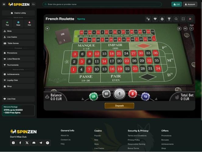 ستجد على الجانب الأيسر من شاشتك جميع عروض الكازينو، بينما يحتوي الجزء السفلي على جميع المعلومات الضرورية حول كيفية عمل الكازينو، لذا ننصحك بالاطلاع على قسم الشروط والأحكام وفهم جميع القواعد قبل بدء رحلتك هنا.