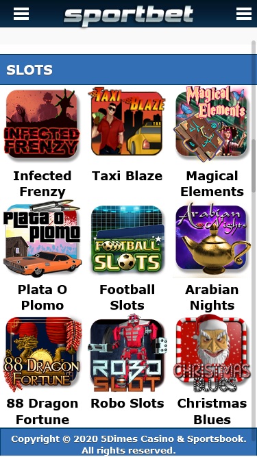 كازينو Sportbet هو موقع مراهنات عبر الإنترنت مقره كوستاريكا ويعمل منذ عام 1997. الكازينو مملوك لمجموعة 5Dimes، والمعروفة في الغالب بكتابها الرياضي الصديق للأمريكيين.معلومات الكازينو