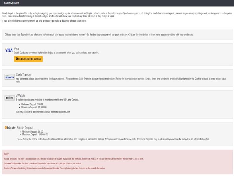 يتم تشغيل Sportsbook Casino بواسطة BetSoft and Proprietary ، والذي يمنح اللاعبين فرصة لعب ألعاب الكازينو مباشرة من خلال متصفح الويب الخاص بك.خيارات الخدمات المصرفية في Sportsbook Casino