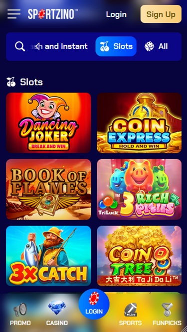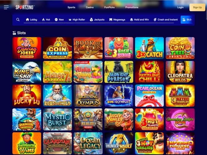 عشاق ماكينات القمار على موعد مع تجربة لا تُنسى باستكشاف مجموعة واسعة من الألعاب المتاحة على سبورتزينو. انغمسوا في كتالوجنا الواسع، الذي يعرض تشكيلة متنوعة من ماكينات القمار الإلكترونية ، بما في ذلك أحدث الإصدارات، والألعاب الكلاسيكية الخالدة، وألعاب ميغاوايز، وهولد آند لينكس، ومجموعة متنوعة من الأنواع المثيرة الأخرى.