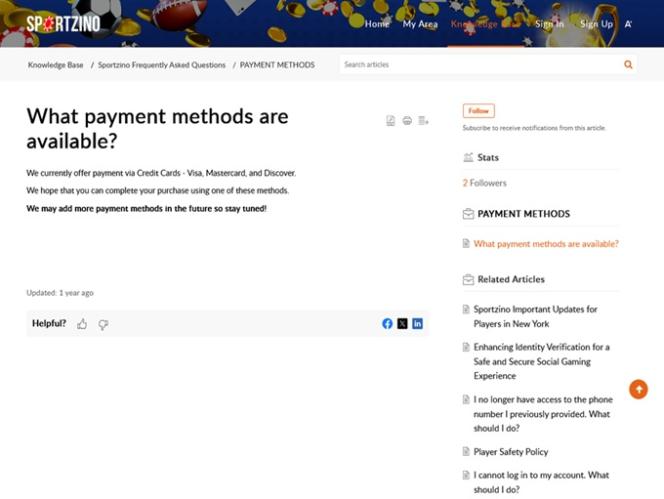 للأسف، لا يُقدّم Sportzino خدمة الدردشة المباشرة لدعم العملاء أو مساعدة اللاعبين، مع أن هذه الميزة متوفرة بشكل أساسي في معظم المواقع الإلكترونية الحديثة. يُمكن التواصل مع فريق دعم عملاء Sportzino عبر البريد الإلكتروني فقط.