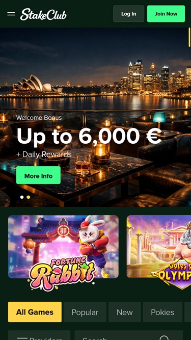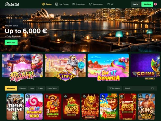 StakeClub هو كازينو يدعم العملات الرقمية، ويقدم محتوى كازينو مباشر مع موزعين حقيقيين، وألعاب عملات رقمية شهيرة، وعروض ترويجية جذابة، وبطولات، وبرنامج VIP مميز . فلنتعرف معًا على عروض الكازينو بمزيد من التفصيل!