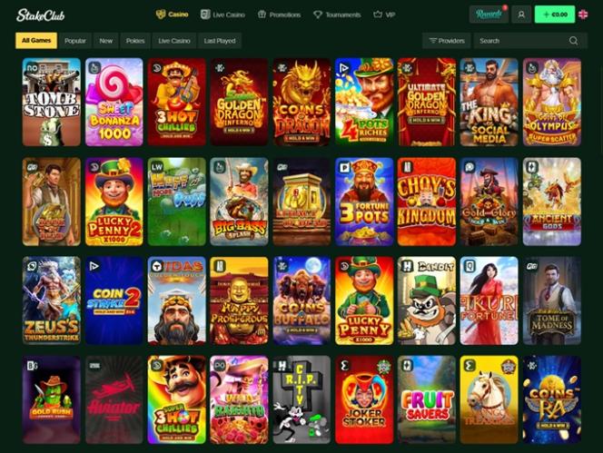 كما ذكرنا سابقاً، تتعاون StakeClub مع قائمة طويلة من استوديوهات البرمجيات ذات السمعة الطيبة مثل Microgaming, Net Entertainment, Real Time Gaming, BetSoft, 1x2gaming, Big Time Gaming, Evolution Gaming, Ezugi, Habanero Systems, Novomatic, Play'n GO, playson, Quickspin, Relax Gaming, Thunderkick, Endorphina, Wazdan, Pragmatic Play, Nolimit City, Red Tiger Gaming, Booongo, Felix Gaming, Red Rake Gaming, Skillzzgaming, Belatra Games, Fantasma Games, FUGA Gaming, Platipus Gaming, Triple Edge Studios, BGAMING, Northern Lights Gaming, Evoplay, Stormcraft Studios, Switch Studios, OneTouch, Electric Elephant Games, Pocket Games Soft, Triple PG, All41 Studios, CQ9 Gaming, Mascot Gaming, Gameburger Studios, Pulse 8 Studios, Neon Valley Studios, SpinPlay Games, Mancala Gaming, Real Dealer Studios, Buck Stakes Entertainment, Caleta Gaming, Games Global, Reevo, Blueprint Gaming, Greentube, Push Gaming, Tom Horn Gaming, Wager Gaming, Iron Dog Studio, Foxium, Storm Gaming Technology, PearFiction Studios, Wild Streak Gaming, Slingshot Studios, Fortune Factory Studios, 4ThePlayer, AvatarUX, Crazy Tooth Studio, ReelPlay, Alchemy Gaming, Snowborn Games, Hacksaw Gaming, Max Win Gaming, Gold Coin Studios, Gamzix, Slotmill, Dragon Gaming, Peter And Sons, Eurostar Studios, Aurum Signature Studios, Onlyplay, Dragoon Soft, Area Vegas, Winfinity, 3 Oaks Gaming, Wishbone Games, Spribe, Jili, Circular Arrow, HammerTime Games, Four Leaf Gaming, Nailed It! Games, Neko Games, Reel Kingdom, Oros Gaming, Popiplay, Light & Wonder, Live88, Playzia, VoltEnt, Kitsune Studios and Turbo Games .