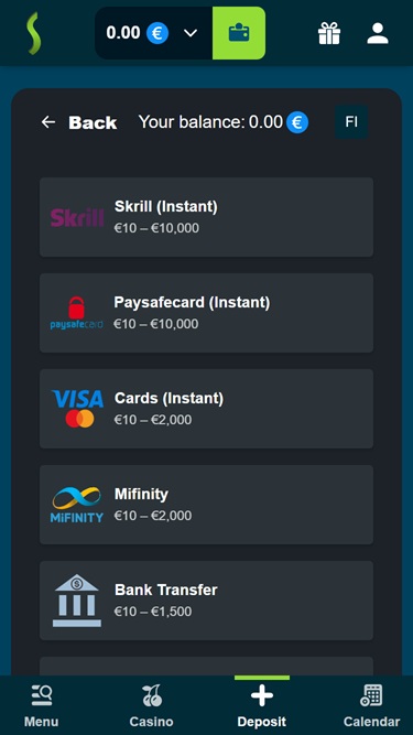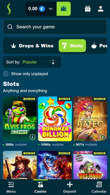 يمكن للمقامرين اختيار المحتوى المفضل لديهم في أي وقت من الأوقات، حيث يمكنهم تصفح مكتبة الألعاب إما عن طريق مزود اللعبة أو ببساطة اختيار نوع لعبة الكازينو المفضلة لديهم والاطلاع على العناوين المميزة أو تصفحها حسب اسم اللعبة.