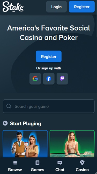 Stake.us هو كازينو اجتماعي على الإنترنت غير مرخص أو منظم من قبل أي جهة تنظيمية. يدعو المشغل لاعبين من ولايات أمريكية متعددة، باستثناء واشنطن، ميشيغان، نيفادا، كنتاكي، أيداهو، ونيويورك.