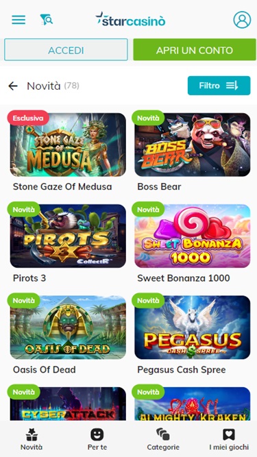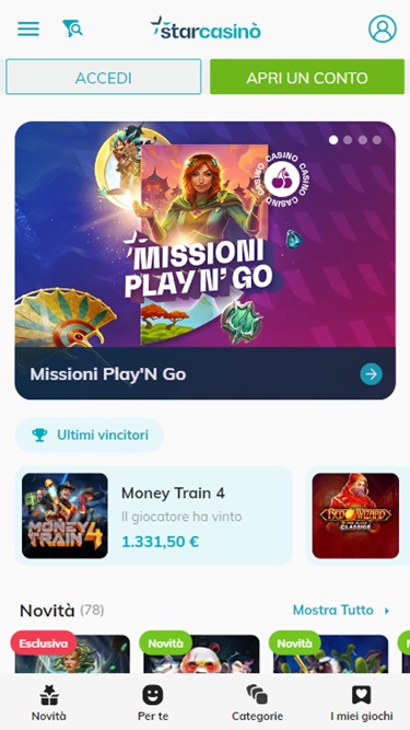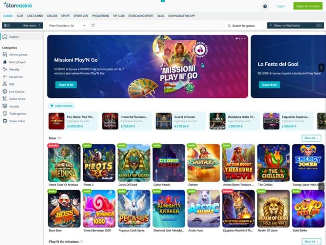 كازينو ستار هو كازينو إلكتروني يعمل منذ عام ٢٠١٢، ويركز على سوق المراهنات الإيطالي. يعتمد الكازينو على برمجيات من Net Ent، ويتميز بشروط مراهنة جيدة وأوقات دفع سريعة، مما يجعله وجهة مثالية للمقامرة إذا كنت من هواة المراهنات الإيطاليين.