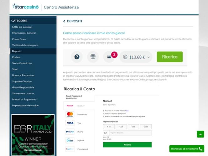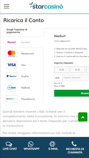 خيارات الخدمات المصرفية في Star Casinò
