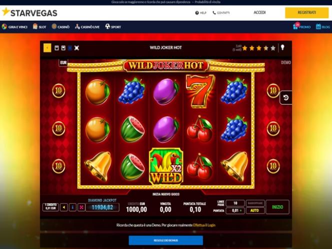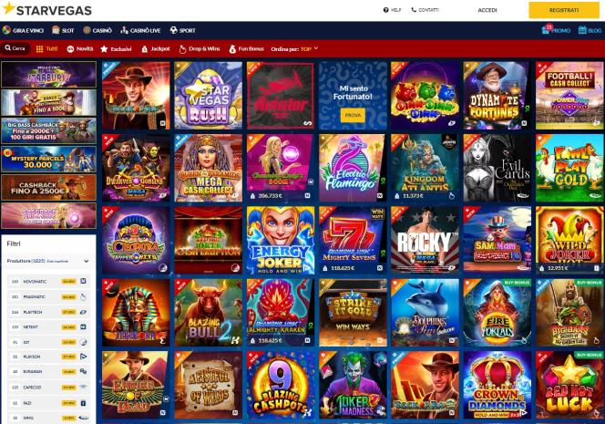 يقدم موقع StarVegas.it مجموعة واسعة من ماكينات القمار الكلاسيكية والفيديو، وتتميز هذه الألعاب بخصائص فريدة من نوعها، يقدمها مطوروها. يتيح لك هذا فرصة لعب ألعاب مثل Lord of the Ocean وSecret Elixir وPharaoh's Ring وLucky Lady's Charm Deluxe، بالإضافة إلى عشرات الألعاب الأخرى. كما تتوفر جوائز كبرى تصاعدية، تصل قيمتها إلى ستة أرقام في أي وقت. تتوفر أيضًا ألعاب قمار للهواتف المحمولة، ما يتيح لك فرصة اللعب عبر هاتفك الذكي أو جهازك اللوحي.برنامج نقاط المنافسة