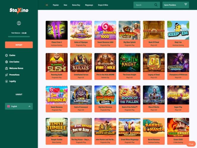 إلى جانب تصميمه البسيط وسهل الاستخدام، يُقدّم كازينو ستاكسينو تشكيلة واسعة من الألعاب. سواءً كنت مهتمًا باللعب مع موزعين مباشرين، أو برامج ألعاب، أو ماكينات القمار الإلكترونية، أو بطاقات الخدش ، ستستمتع بتصفح جميع الخيارات المتاحة.