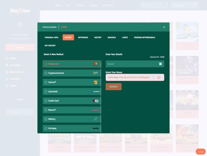 كازينو ستاكسينو مرخص ومنظم من قبل هيئة كاهناواكي للألعاب. يرحب الكازينو باللاعبين من ألمانيا والنمسا وفنلندا وكندا للاستمتاع بجميع خيارات الألعاب والعروض الترويجية المتاحة.
