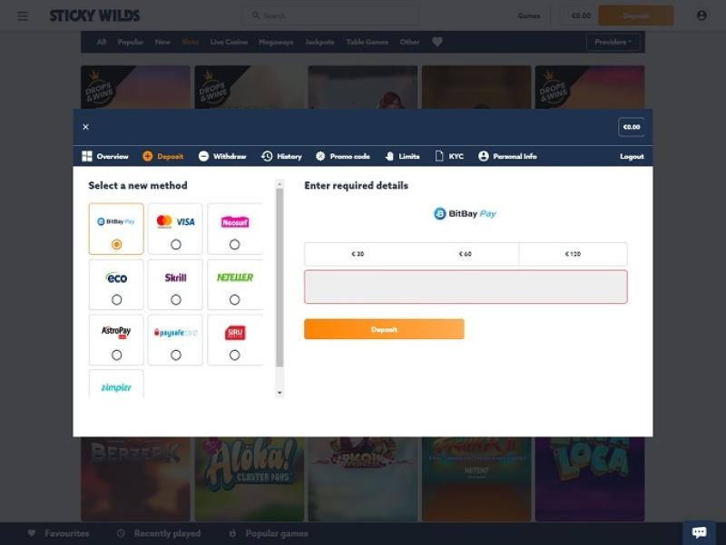 خيارات الخدمات المصرفية في StickyWilds Casino
