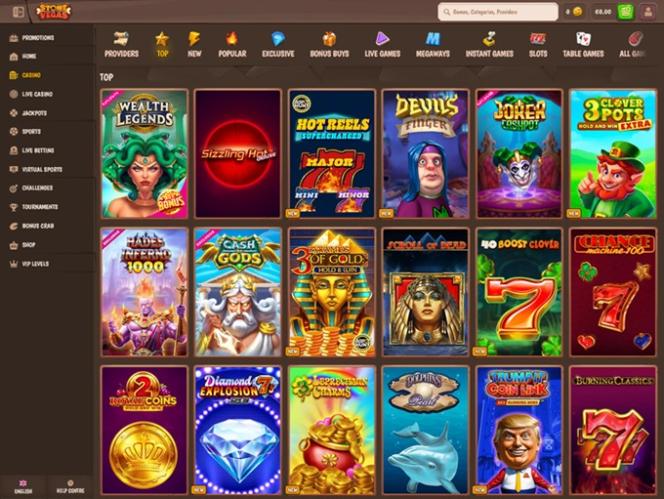 كازينو ستون فيغاس هو كازينو ضخم على الإنترنت يُركز على تزويد قاعدة لاعبيه الكبيرة بمجموعة هائلة من ألعاب وأنشطة الكازينو، بما في ذلك خيارات مراهنات رياضية متعددة. يُمكن للاعبين تجربة ماكينات القمار على الإنترنت، والموزعين المباشرين، وألعاب الطاولة، وألعاب كراش، والمراهنة بأموالهم باستخدام العديد من الخيارات المصرفية، بما في ذلك العملات المشفرة مثل بيتكوين. كما يُقدم الكازينو خطة ترويجية شاملة مليئة بالمكافآت والعروض الترويجية.