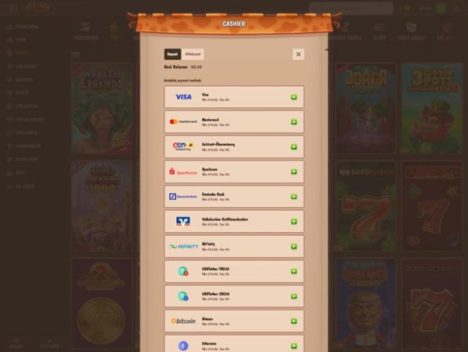 فيما يتعلق بالخيارات المصرفية، يمكنك استخدام عدة طرق دفع مختلفة لإدارة أموالك في الكازينو. تشمل بعض الخيارات الطرق التقليدية، مثل فيزا ، وماستركارد ، والتحويل البنكي ، وسكريل ، ونتلر ، وباي سيف كارد ، وماي فينيتي . في المقابل، تشمل الخيارات الأخرى العملات المشفرة مثل بيتكوين ، وبيتكوين كاش ، وكاردانو ، ودوجكوين ، وإيثريوم ، ولايتكوين ، و USD Coin ، وتيثر ، وريبل .