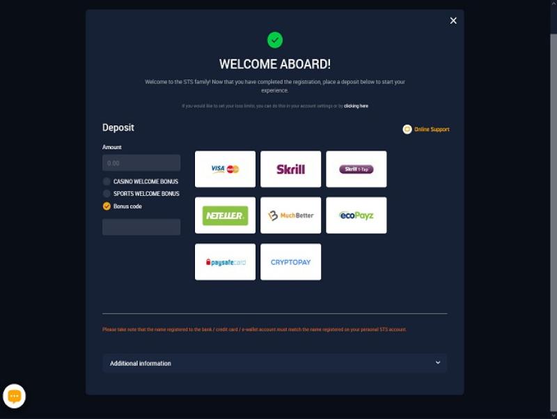 كازينو STS هو كازينو إلكتروني ومشغل مراهنات رياضية، مملوك لشركة STS.Bet Limited، وهي شركة مسجلة بموجب قوانين مالطا. لمجموعة STS Gaming مكاتب في بولندا وجمهورية التشيك ومالطا، وتعمل بموجب تراخيص من المملكة المتحدة وإستونيا.