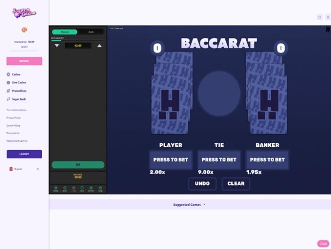 يقدم كازينو Sugar لعملائه نقاطًا بناءً على ما يراهنون عليه، ويمكن للاعبين استبدال 100 نقطة مكافأة مقابل 1 يورو نقدًا في الكازينو، ولا توجد متطلبات مراهنة مرتبطة بالمكافآت.معلومات الترخيص