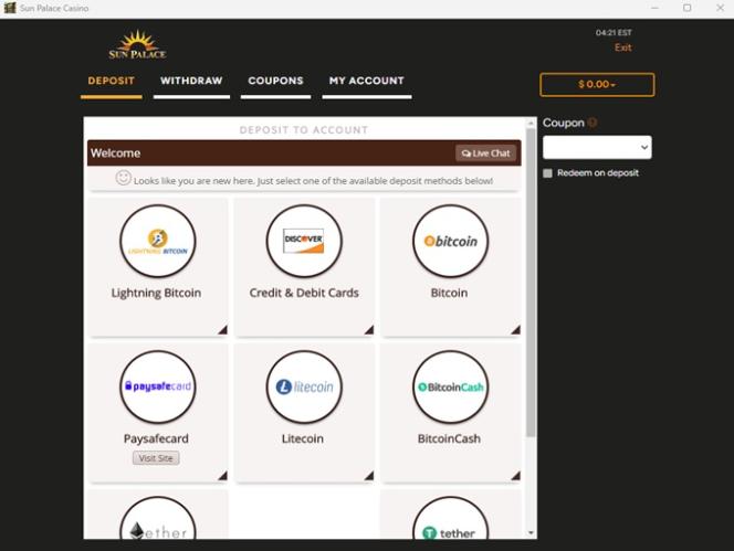 خيارات الخدمات المصرفية في Sun Palace Casino