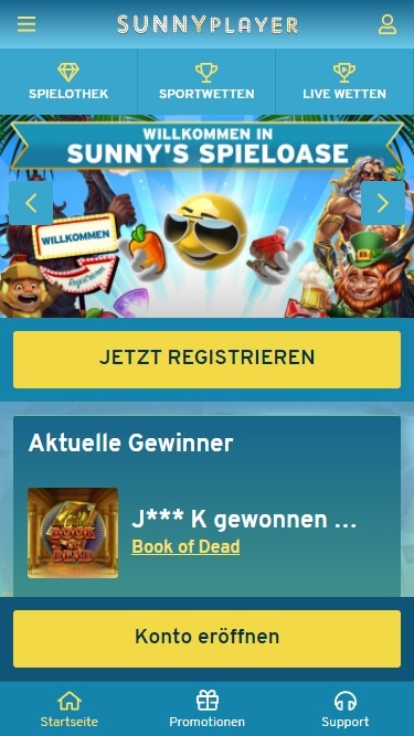 كازينو Sunnyplayer هو موقع مراهنات إلكتروني، تأسس عام ٢٠١٣ بواسطة شركة Sun Media SA. يركز الكازينو بشكل أساسي على السوق الأوروبية، ويستخدم مجموعة برامج من Merkur. اشتهر الكازينو بمجموعة ألعابه الفريدة وعدم وجود حدود للسحب، إلا أن متطلبات الرهان الأعلى من المعتاد على المكافآت قد تُثني بعض اللاعبين.معلومات الكازينو