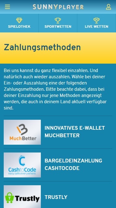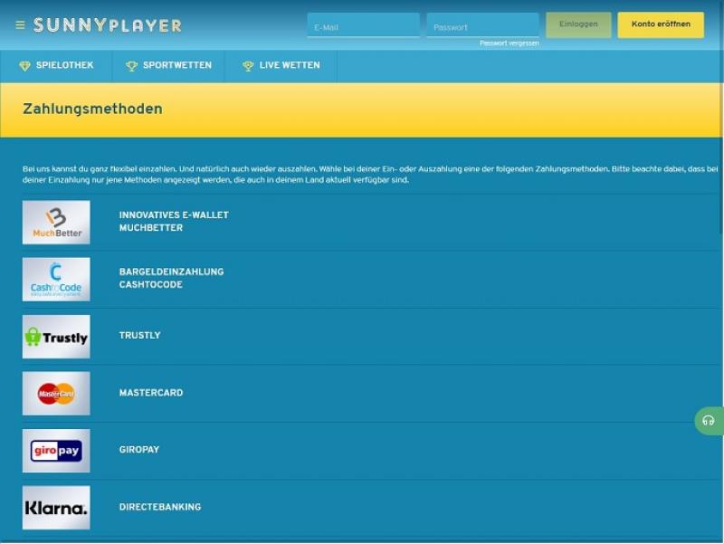 عند مراجعة الشروط والأحكام في كازينو Sunnyplayer، لم أجد أي شيء فيه استغلال أو ظلم للاعبين. مع ذلك، فإن شروط Sunnyplayer مكتوبة باللغة الألمانية، لذا قد لا تكون ترجمتي دقيقة. يوفر كازينو Sunnyplayer العديد من خيارات سحب الإيداعات، حيث يمكن للاعبين إيداع وسحب الأموال عبر: Maestro، Skrill، Visa، Neteller، MasterCard، والتحويل البنكي المباشر. كما يمكن الإيداع عبر Giropay، iDeal، SOFORT، American Express، Paysafecard، وSolo. مدة السداد حوالي يومين إلى ثلاثة أيام، ولا توجد حدود لسحب الأرباح.خيارات الخدمات المصرفية في Sunnyplayer Casino