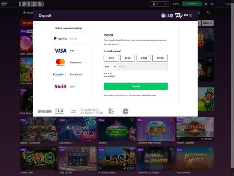 خيارات الخدمات المصرفية في SuperCasino