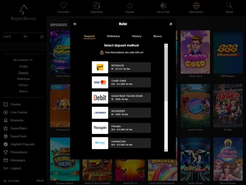 خيارات الخدمات المصرفية في SuperSeven Casino