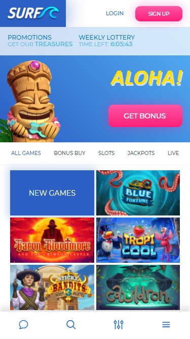 يقدم كازينو Surf تشكيلة واسعة من ألعاب القمار الإلكترونية، مع أكثر من 1100 لعبة متاحة حتى وقت كتابة هذه المراجعة. تشمل ألعاب الكازينو ألعابًا من Play'n Go وQuickspin وAmatic وiSoftBet وNetEnt وغيرها. لن تواجه صعوبة في العثور على لعبة تناسب ذوقك، بل هناك جوائز كبرى تصاعدية. يمكنك أيضًا لعب ألعاب القمار على هاتفك الذكي أو جهازك اللوحي.