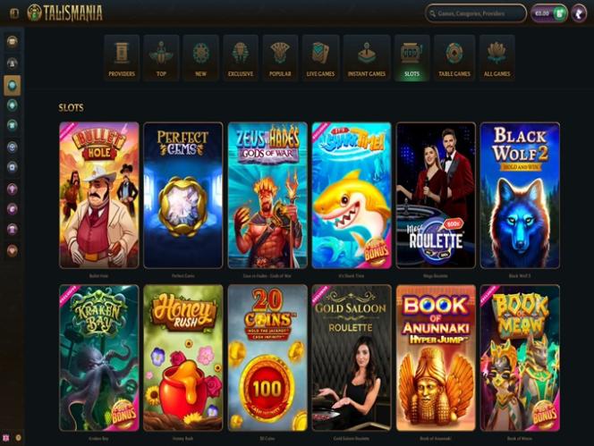بما أن ماكينات القمار الإلكترونية هي اللعبة الأكثر شعبية بين اللاعبين، يقدم كازينو تاليسمانيا مجموعة واسعة من ماكينات القمار تناسب جميع مستويات الخبرة. يستضيف المشغل أكثر من ستة آلاف لعبة متاحة، ويضمن أن هذه المجموعة المتنوعة من الألعاب تُبقي اللاعبين منشغلين ومستمتعين.