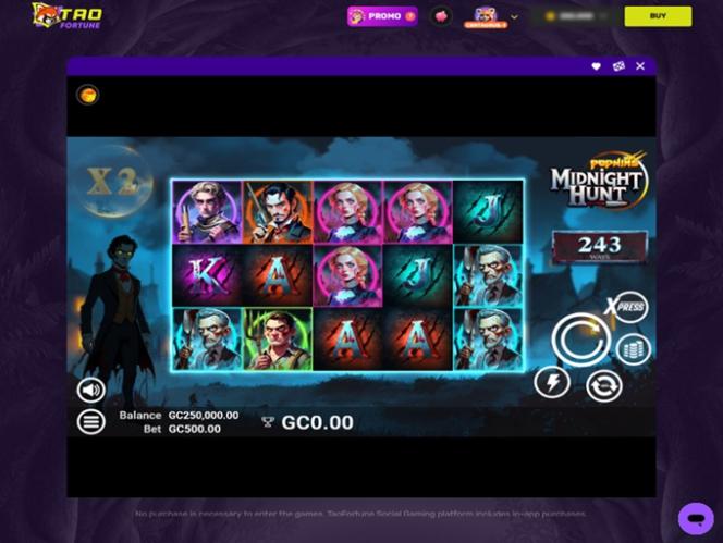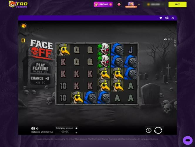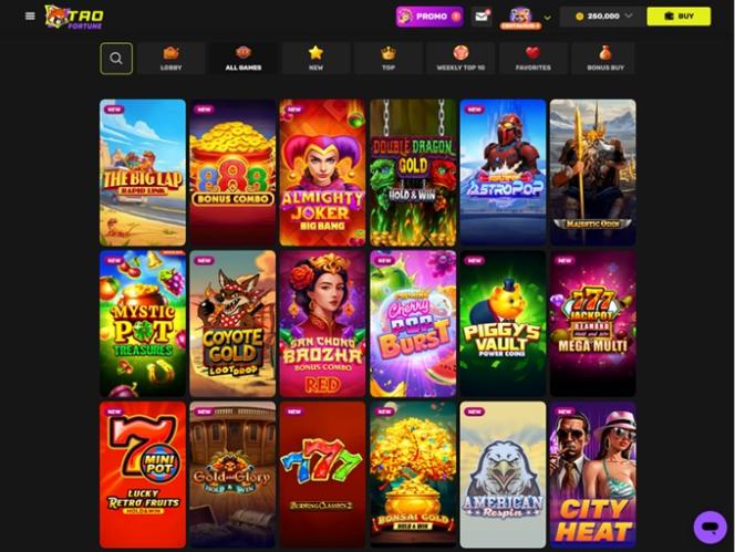 كازينو تاو فورتشن هو موقع ألعاب اجتماعي أمريكي، يتميز بتصميم بسيط وجذاب، يُتيح للاعبين تصفح الموقع بسهولة وراحة تامة أثناء الاستمتاع ببيئة أنيقة. منذ البداية، يمكن للاعبين لعب جميع الألعاب على الموقع مجانًا دون الحاجة إلى أي عمليات شراء. يمكن ربح عملات تاو والعملات السرية بمجرد اللعب أو من خلال العروض الترويجية. إذا كنت ترغب في الاستمتاع دون مخاطرة، فهذا هو المكان المناسب.