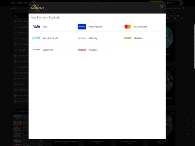 يعمل كازينو جراند آيفي بواسطة Microgaming, Net Entertainment, 1x2gaming, Barcrest, Big Time Gaming, ELK Studios, Evolution Gaming, EYECON, Ezugi, lightningboxgames, Oryx, Play'n GO, Rabcat, Relax Gaming, Thunderkick, Wazdan, Realistic Games, Stakelogic, Pragmatic Play, Nolimit City, Felt Gaming, Red Tiger Gaming, IGT, Spinomenal, Fantasma Games, SYNOT Games, Kalamba, Revolver Gaming, Skywind, Spinmatic, Triple Edge Studios, Northern Lights Gaming, Stormcraft Studios, Switch Studios, Electric Elephant Games, Pocket Games Soft, All41 Studios, Gluck Games, Gameburger Studios, Pulse 8 Studios, Neon Valley Studios, Golden Rock Studios, Spearhead Studios, Swintt, Shuffle Master, SpinPlay Games, HungryBear Gaming, GONG Gaming, Blue Guru Games, Lady Luck Games, Buck Stakes Entertainment, Design Works Gaming, Games Global, 2by2 Gaming, Ainsworth, Bally Technologies, Blueprint Gaming, Endemol Games, Greentube, Leander Games, Merkur Gaming, NextGen, NYX Interactive, Push Gaming, Tom Horn Gaming, WMS, Inspired Gaming, Gaming Realms, SG Interactive, Red7Mobile, CORE Gaming, Scientific Games, Side City Studios, Reel Time Gaming, Authentic Gaming, Iron Dog Studio, Old Skool Studios, Foxium, Betdigital, Just For The Win, Storm Gaming Technology, PearFiction Studios, Apollo Games, Wild Streak Gaming, Slingshot Studios, Fortune Factory Studios, Jade Rabbit Gaming, 4ThePlayer, AvatarUX, Gamevy, Crazy Tooth Studio, NetGaming, High 5 Games, ReelPlay, AGS Interactive, Alchemy Gaming, Black Pudding Games, Hacksaw Gaming, Max Win Gaming, Gold Coin Studios, Half Pixel Studios, SilverBack Gaming, Peter And Sons, Eurostar Studios, Aurum Signature Studios, Armadillo Studios, Lucksome Gaming, Area Vegas, RAW iGaming, Leap Gaming, Wishbone Games, Spribe, Circular Arrow, Print Studios, Gaming Corps, HammerTime Games, Four Leaf Gaming, INO Games, Nailed It! Games, Live 5, Atomic Slot Lab and Neko Games ، وتُقدم ألعاب الكازينو عبر منصة لعب فوري عبر الإنترنت، تتيح للمقامرين التسجيل والإيداع واللعب عبر متصفح الإنترنت. كما يتوفر موقع شامل للهواتف المحمولة، يتيح للاعبين فرصة اللعب باستخدام هواتفهم الذكية وأجهزتهم اللوحية.
