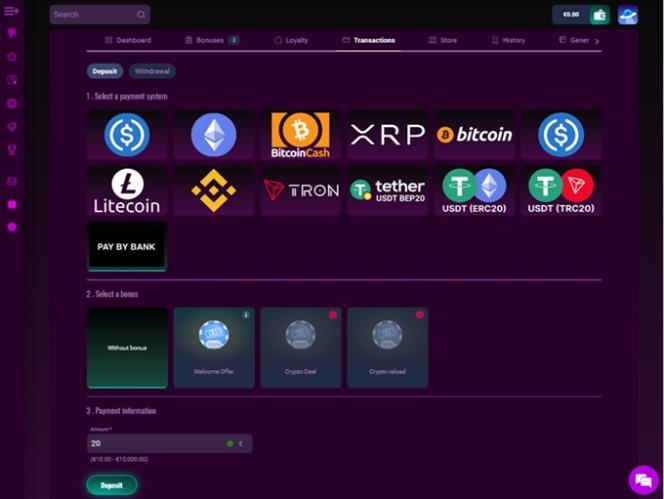 صفقة العملات المشفرة هي مكافأة أخرى متاحة، وهي في الأساس مكافأة مطابقة لإيداعك الأول بالعملات المشفرة. للأسف، لا تتضمن هذه المكافأة دورات مجانية، على عكس المكافأة السابقة.