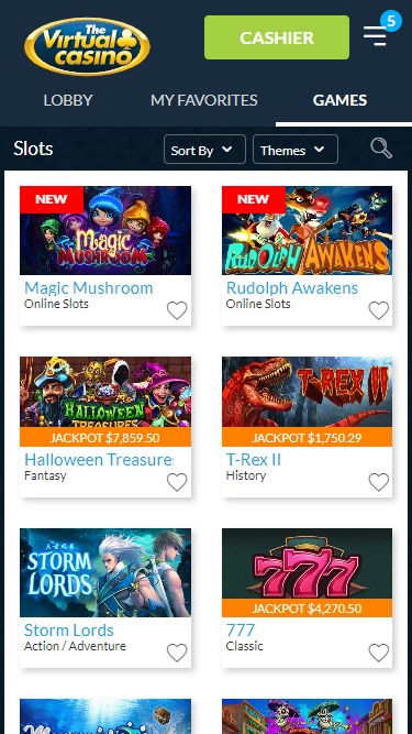 تشكل ماكينات القمار جزءًا كبيرًا من مكتبة The Virtual Casino، حيث يتم منح اللاعبين إمكانية الوصول إلى كل من ماكينات القمار المرئية والكلاسيكية.برنامج نقاط المنافسة