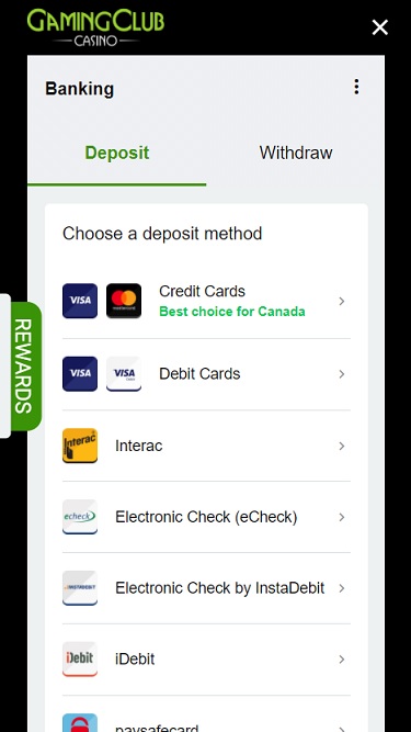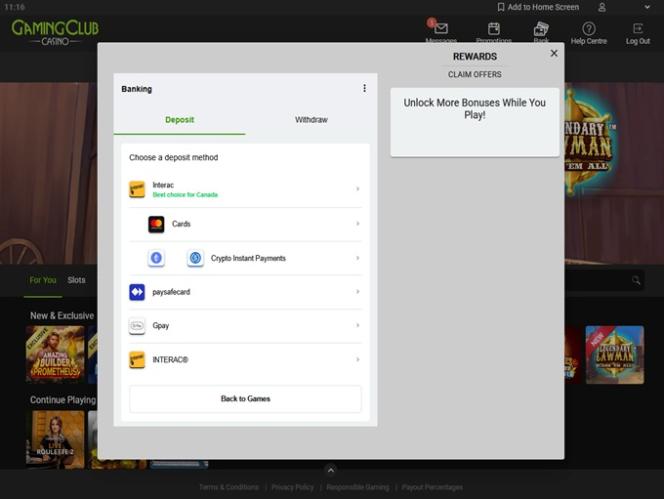 خيارات الخدمات المصرفية في Gaming Club Casino
