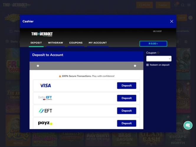 خيارات الخدمات المصرفية في Thunderbolt Casino