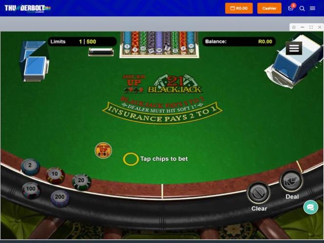 كازينو ثندربولت هو موقع مراهنات إلكتروني افتُتح عام ٢٠١٤، وتديره نفس المجموعة التي أطلقت كازينو سبرينغبوك . يركز الموقع على سوق الألعاب في جنوب أفريقيا، ويسمح حاليًا للاعبين من جنوب أفريقيا ، وناميبيا، وسوازيلاند، وموزمبيق، وليسوتو فقط باللعب. يتميز الكازينو بعدد كبير من الألعاب، وسرعة معالجة دفعات عالية نسبيًا، مما يجعله خيارًا مثاليًا للمقيمين في الأسواق الأفريقية المذكورة أعلاه.